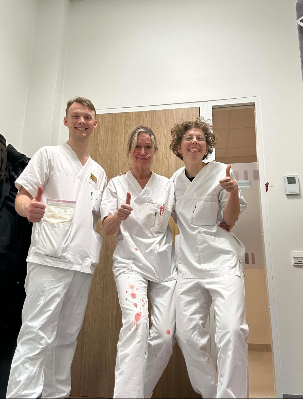 Fornøyd team etter en tvillingfødsel. Fra venstre: LIS Elias Berdal, overlege Gith Eng, overlege Birgitte Gogstad.